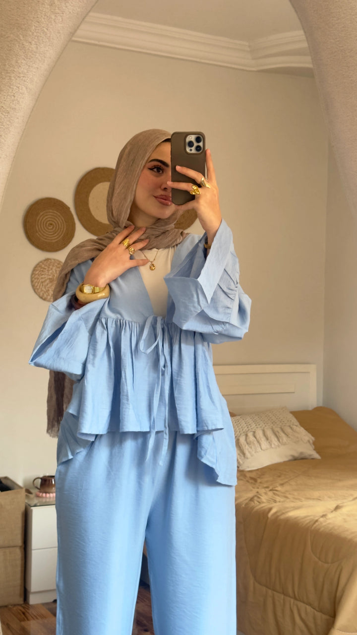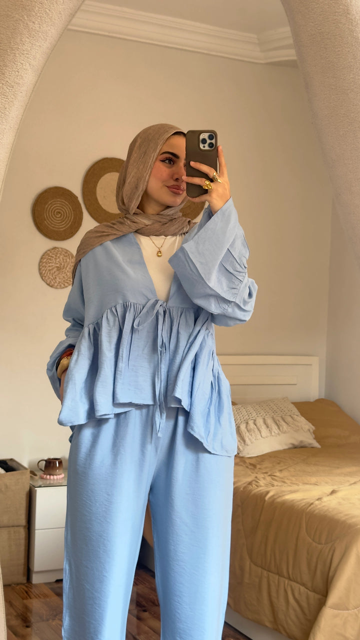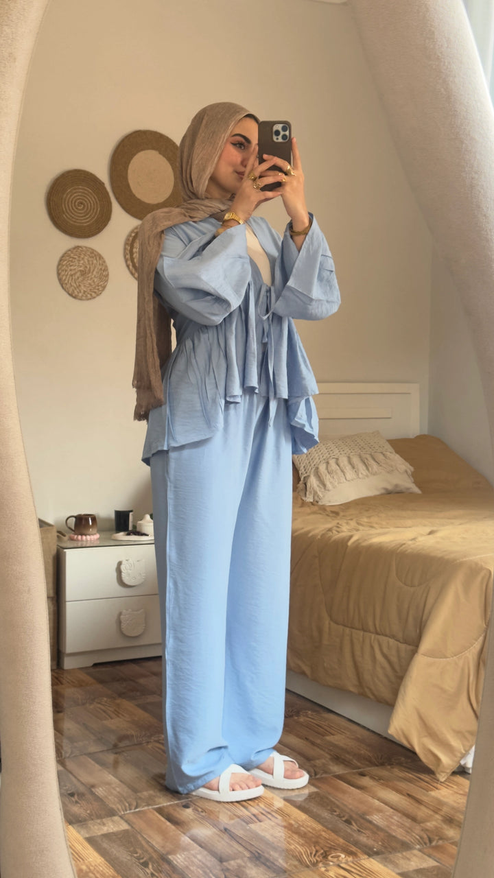 Crafted from our luxurious linen fabric, this two-piece ensemble offers a substantial, soft feel that provides warmth and a beautiful, structured drape—making it far superior to a set.