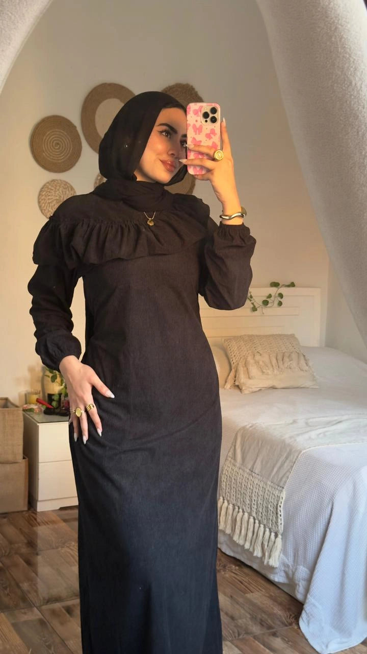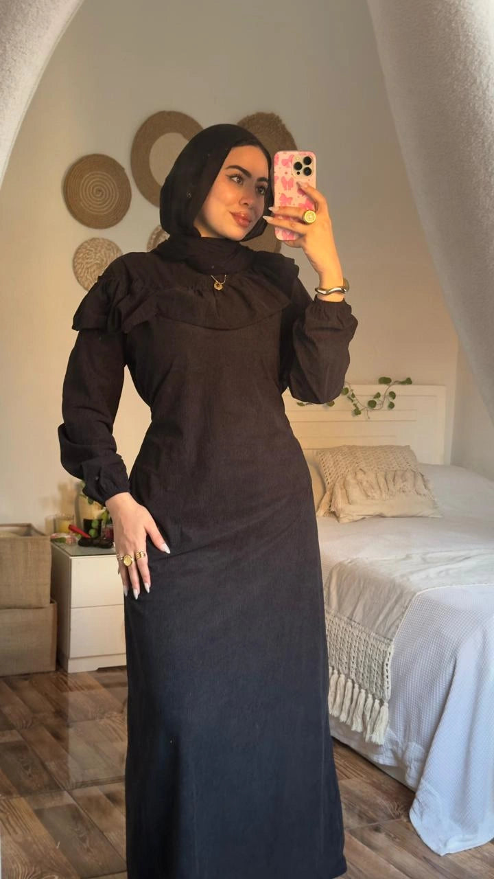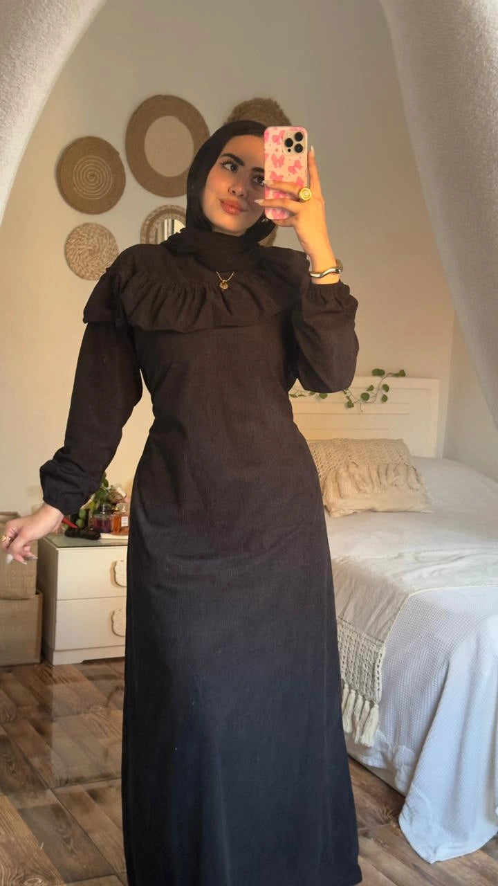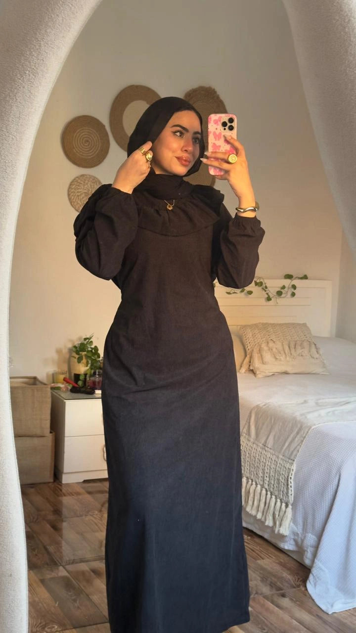 Stay warm and stylish with the Zeina Dress, crafted from premium imported ribbed velvet for a soft, luxurious feel.