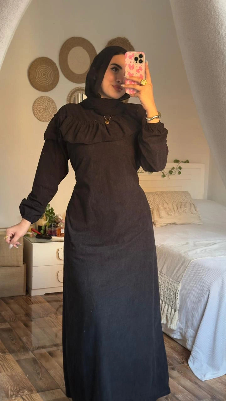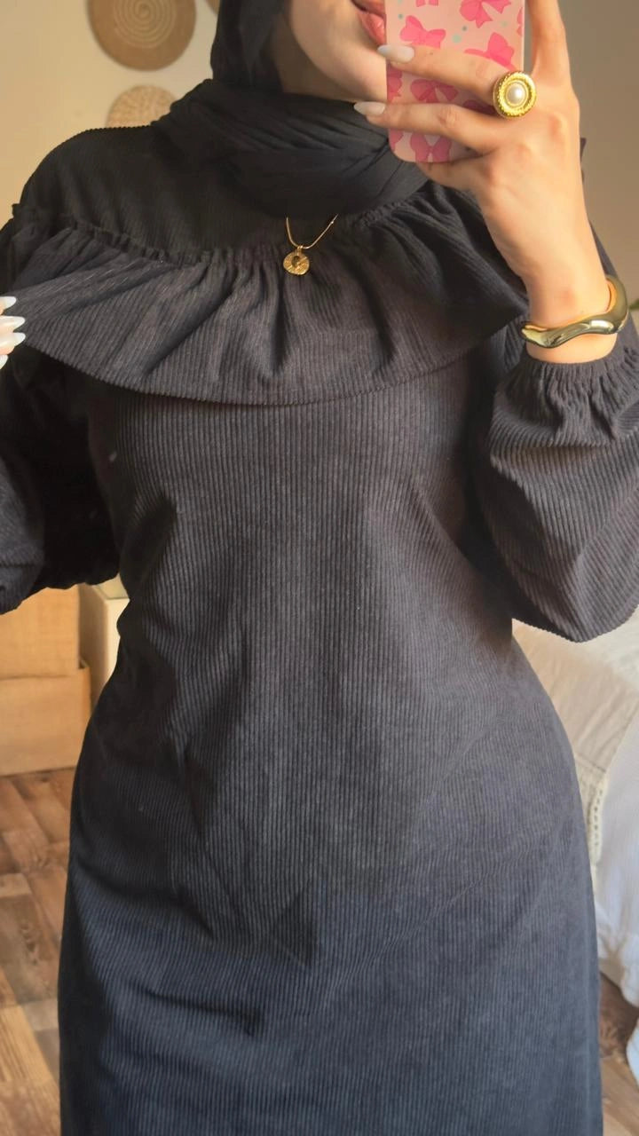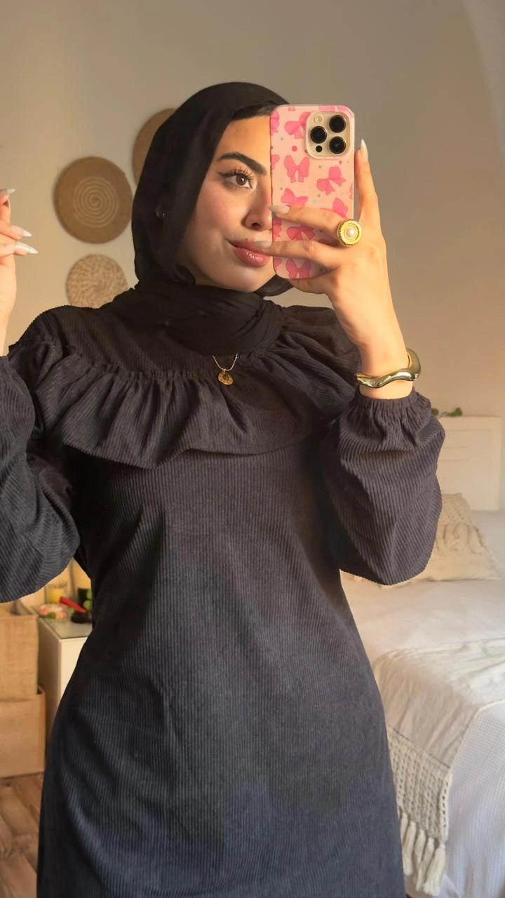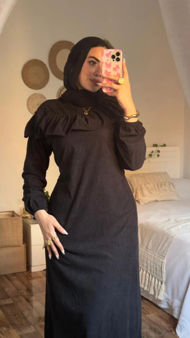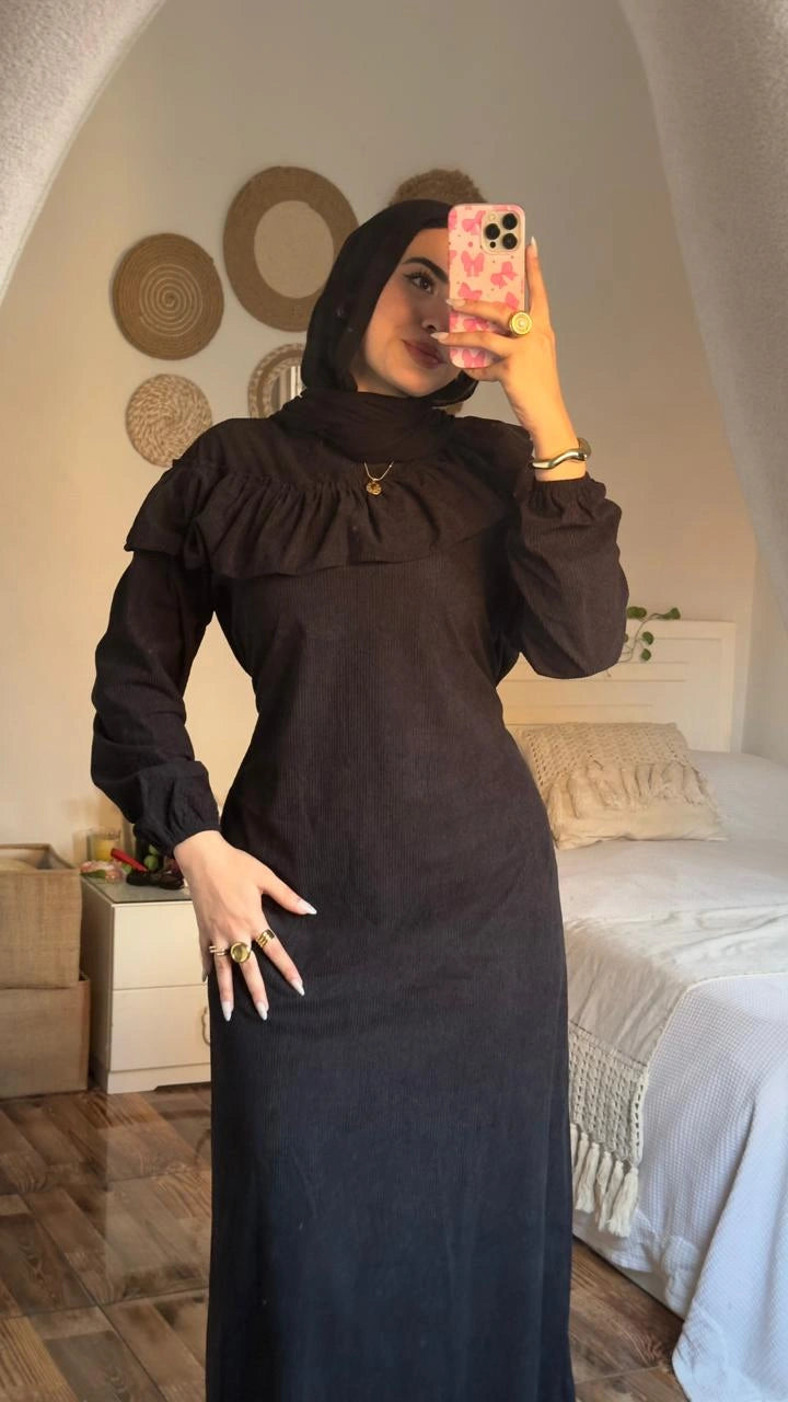 Stay warm and stylish with the Zeina Dress, crafted from premium imported ribbed velvet for a soft, luxurious feel.