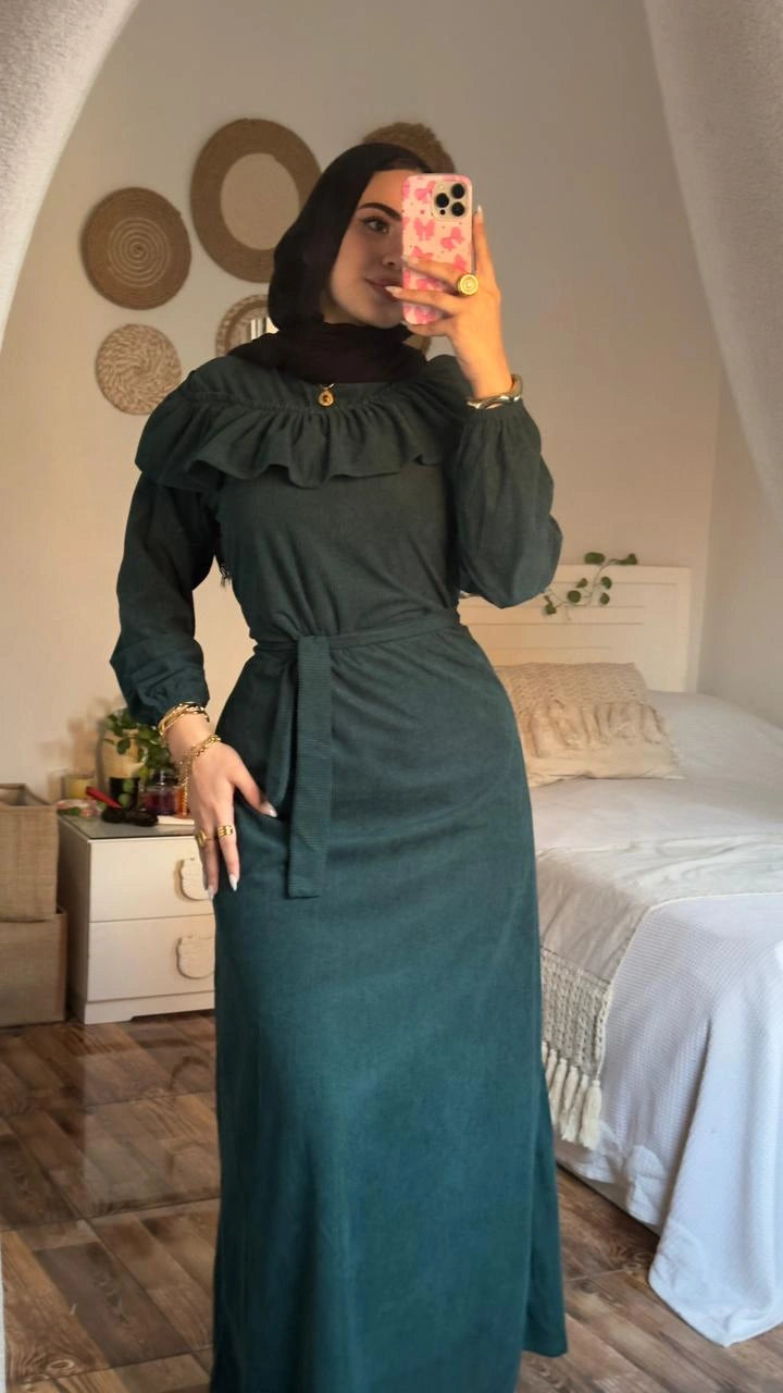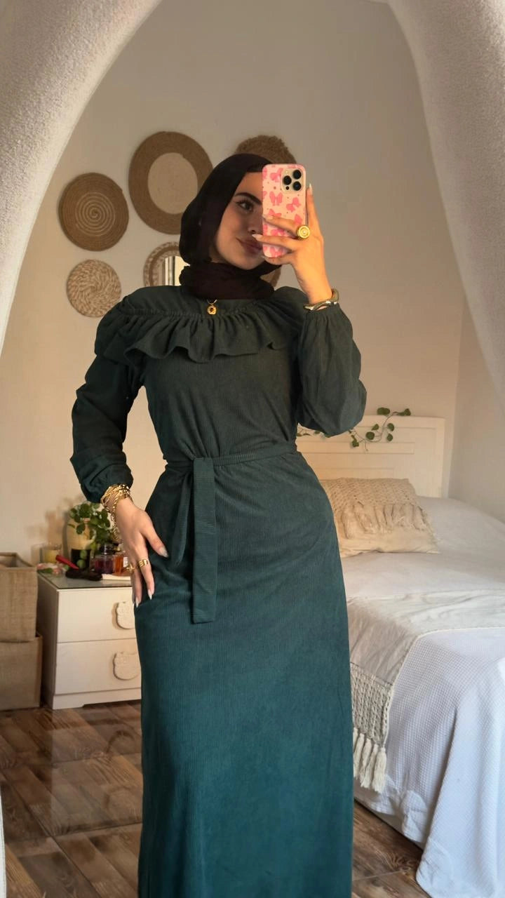 Stay warm and stylish with the Zeina Dress, crafted from premium imported ribbed velvet for a soft, luxurious feel.